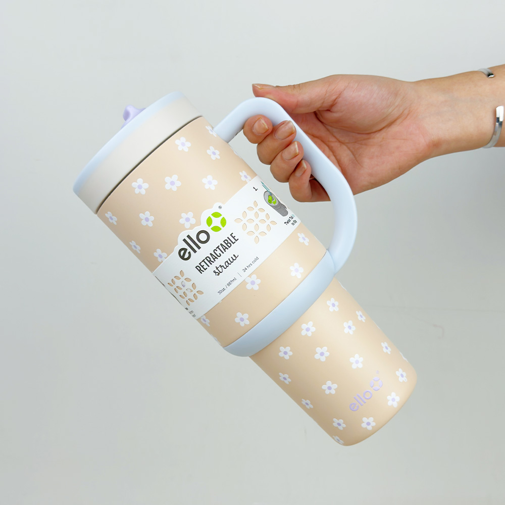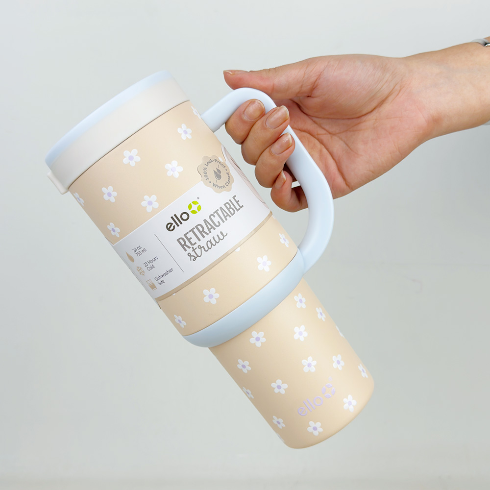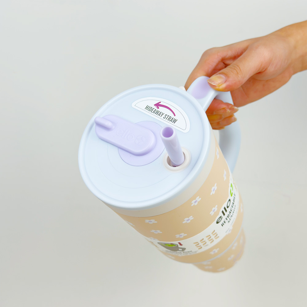 ماگ Oasis Stainless Steel Tumbler از برند Ello یکی از کاربردیترین و زیباترین ماگهای استیل بازار است که برای استفاده روزمره طراحی شده. این لیوان با درپوش خاص Hide-A-Straw™ ساخته شده که بهصورت هوشمندانه نی را درون در پنهان میکند و در نتیجه کاملاً ضد نشت است. حتی اگر آن را در کیف یا خودرو قرار دهید، خیالتان از بابت ریختن نوشیدنی راحت خواهد بود.