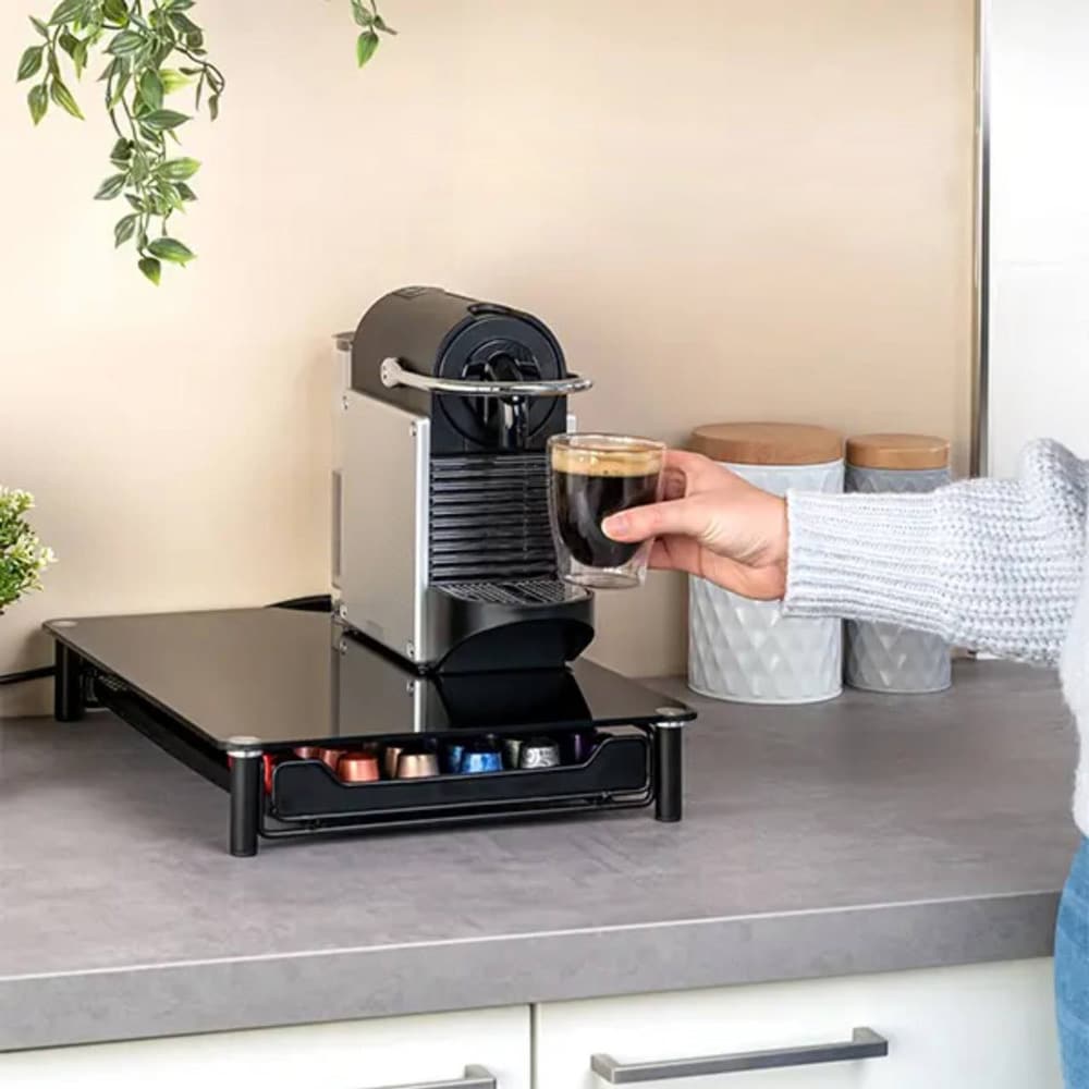 باکس شیشهای کپسول نسپرسو Bremermann با رنگ مشکی. با طراحی شفاف، به شما امکان میدهد کپسولهای خود را بهسادگی مشاهده و انتخاب کنید. کشوی روان و ساختار مقاوم آن، بهراحتی در دسترس بودن و حفظ کپسولها را تضمین میکند. رنگ مشکی کلاسیک و مینیمال این باکس، بهراحتی با هر دکوراسیونی هماهنگ میشود و به محیط قهوهخوری شما جلوهای حرفهای میبخشد.