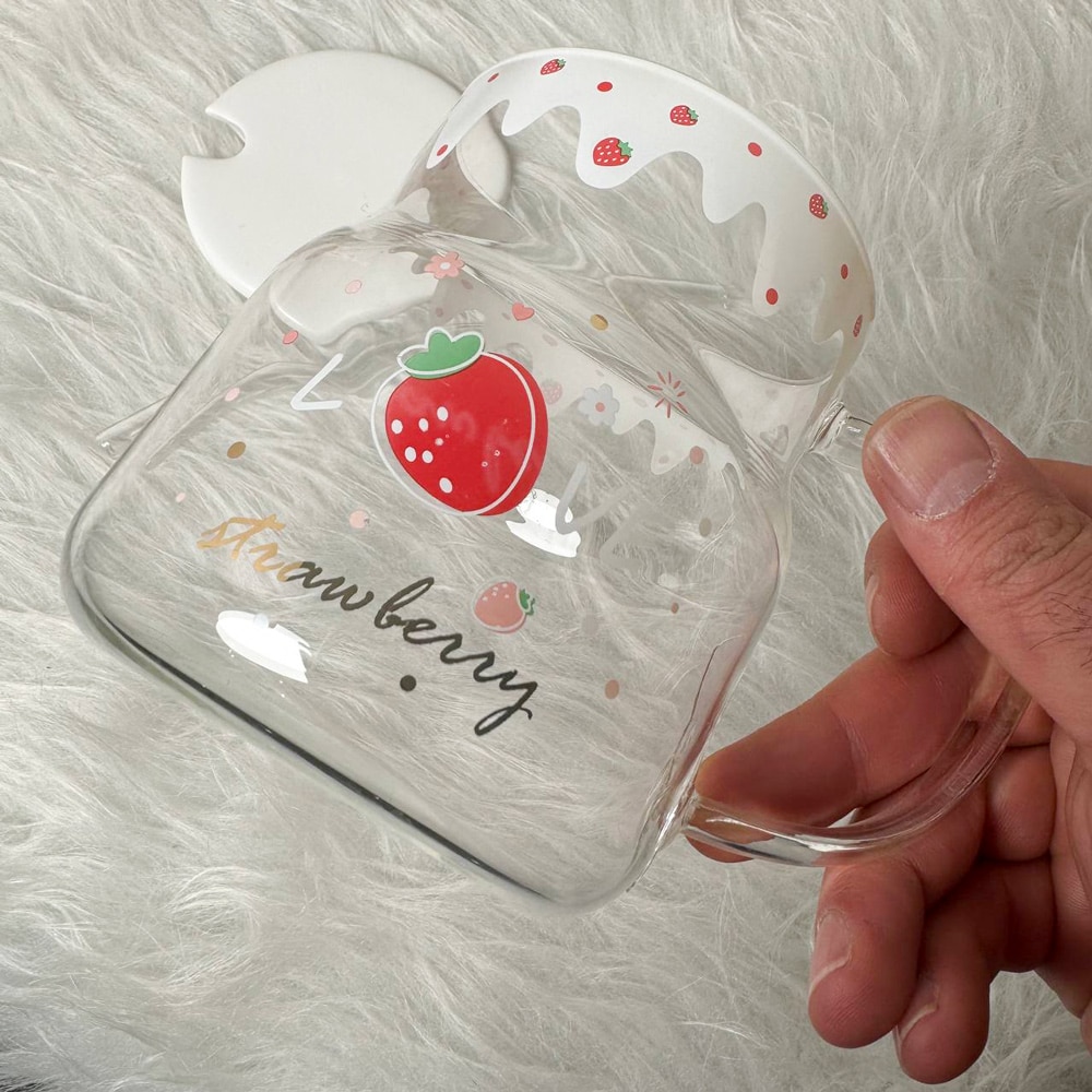 ماگ شیشه ای نی دار توت فرنگی