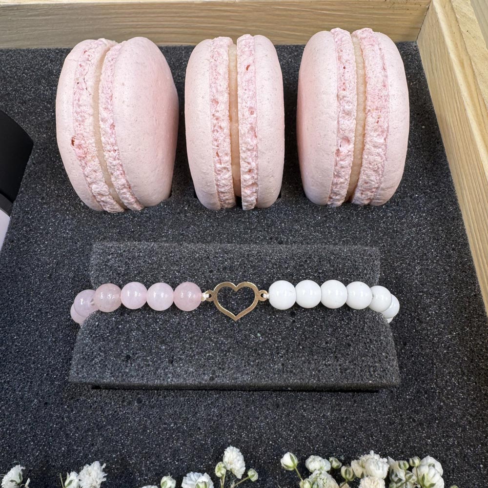 باکس هدیه N101 را در کنار جذابیتها، میتوان یک پکیج پرطرفدار و کاربردی دانست. هارمونی رنگ تراول ماگ، دستبند مروارید و طلا، رزهای طبیعی و ماکارونهای موجود در جعبه، این هدیه را بسیار چشمگیر کرده است که بی شک در همان لحظه اول هدیه گیرنده را مسحور خواهد کرد.