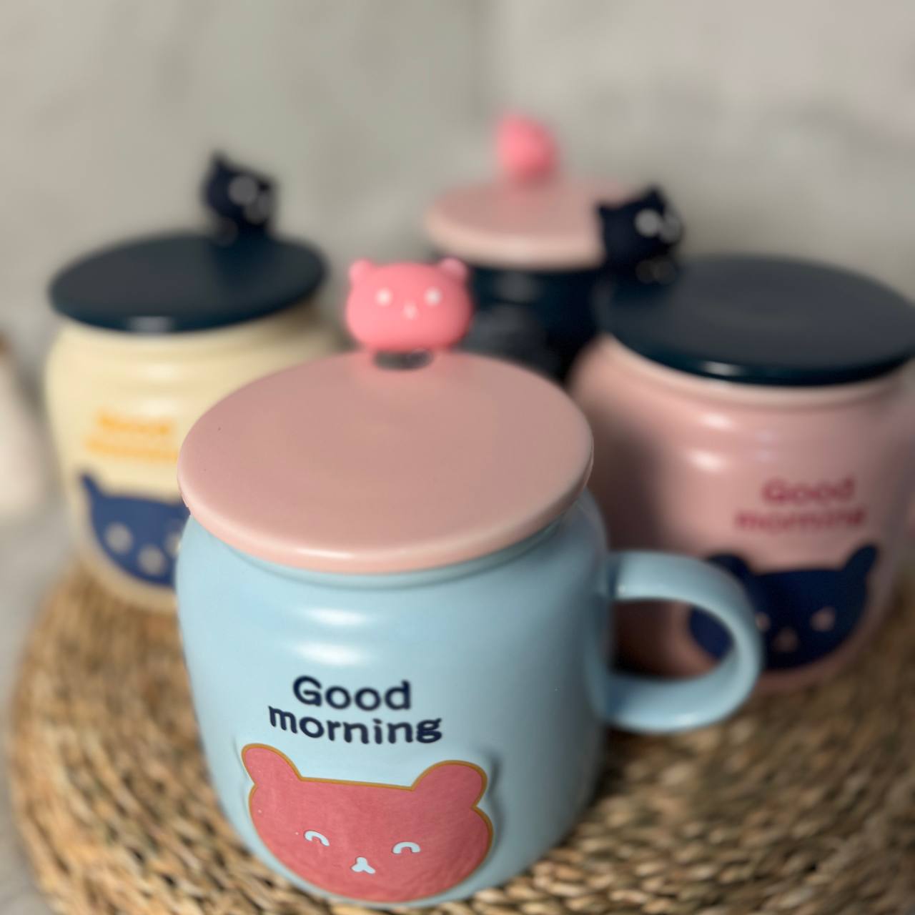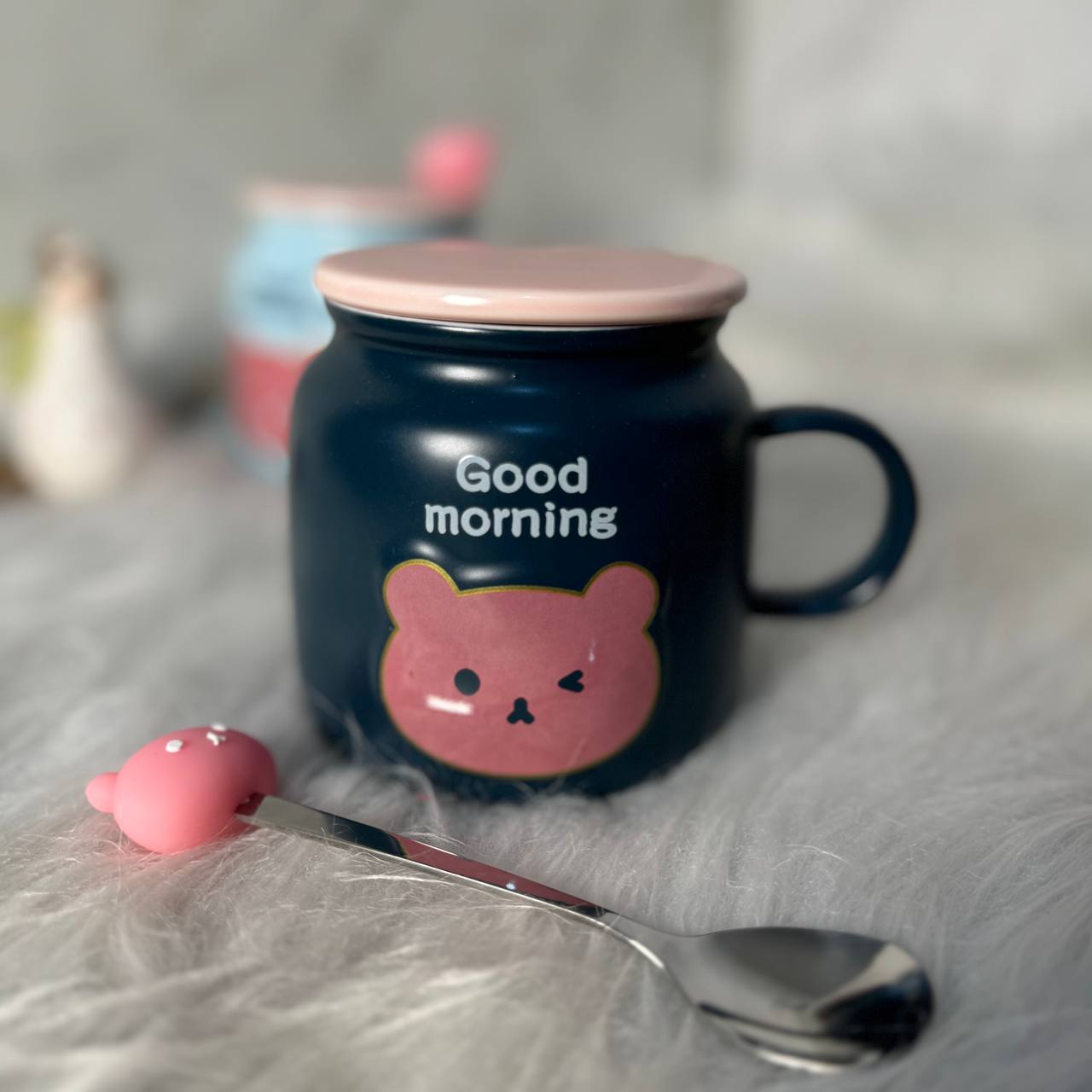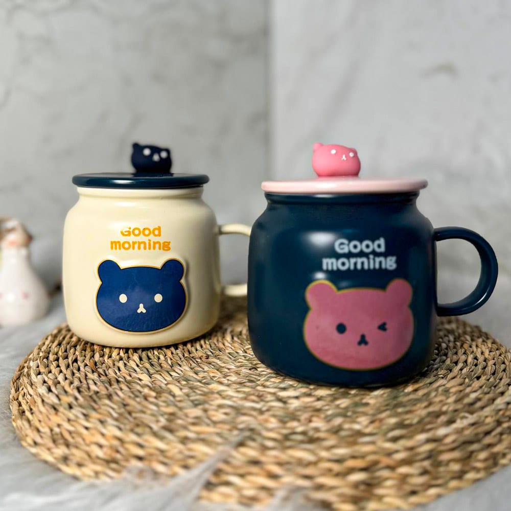 ماگ های سرامیکی good morning همراه با درب و قاشق، از سری محصولات موجود و قابل سفارش در فروشگاه آنلاین شاتوت لند است.
