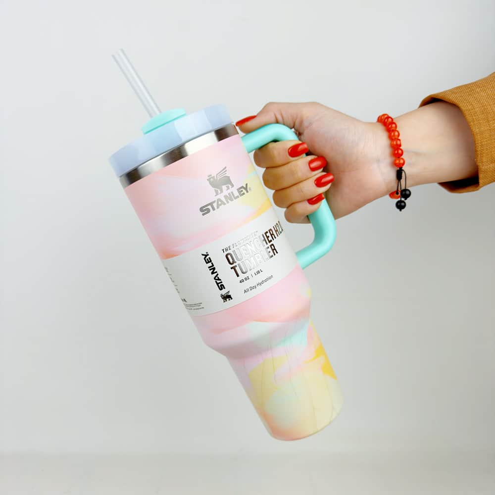 یکی از شیک ترین و کاربردی ترین محصولات موجود در ویترین شاتوت لند، ماگ های دسته دار آن هستند که در طرح ها و مدل های مختلف قابل عرضه به مشتریان می باشند. ماگ دسته دار استنلی صورتی سبز مدل QUENCHER H20 TUMBLER کاستوم شده نمونه ای از آن ها است که علاوه بر دوجداره بودن و داشتن درب ضد نشت، لبی آسان نوش و نی نیز داشته و به راحتی می توان هر نوع مایعی با هر دمایی را تا ساعت ها در آن نگهداشت بدون آن که در بو و مزه ی آن تغییری ایجاد شود.
