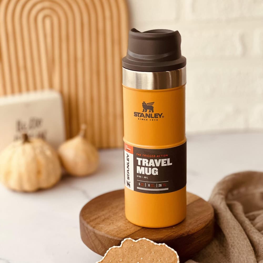 تراول ماگ استنلی 350 میل زرد دکمه ای