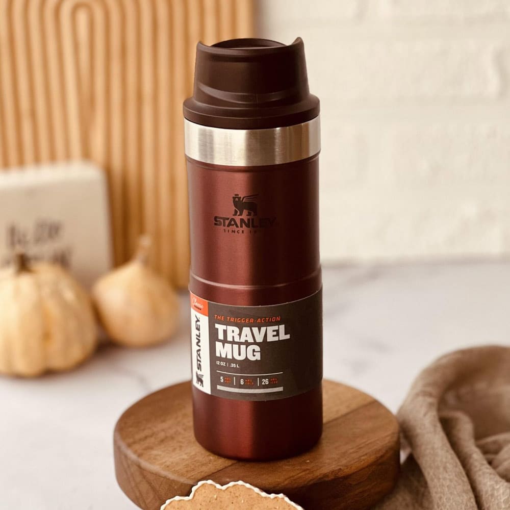 تراول ماگ استنلی 350 میل زرشکی دکمه ای